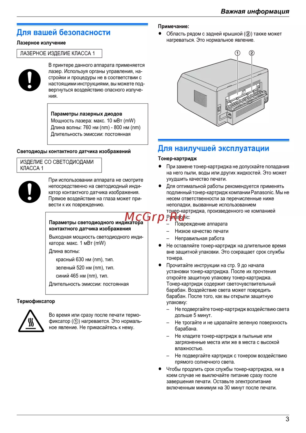 Panasonic KX-MB1500 RU [3/84] Важная информация
