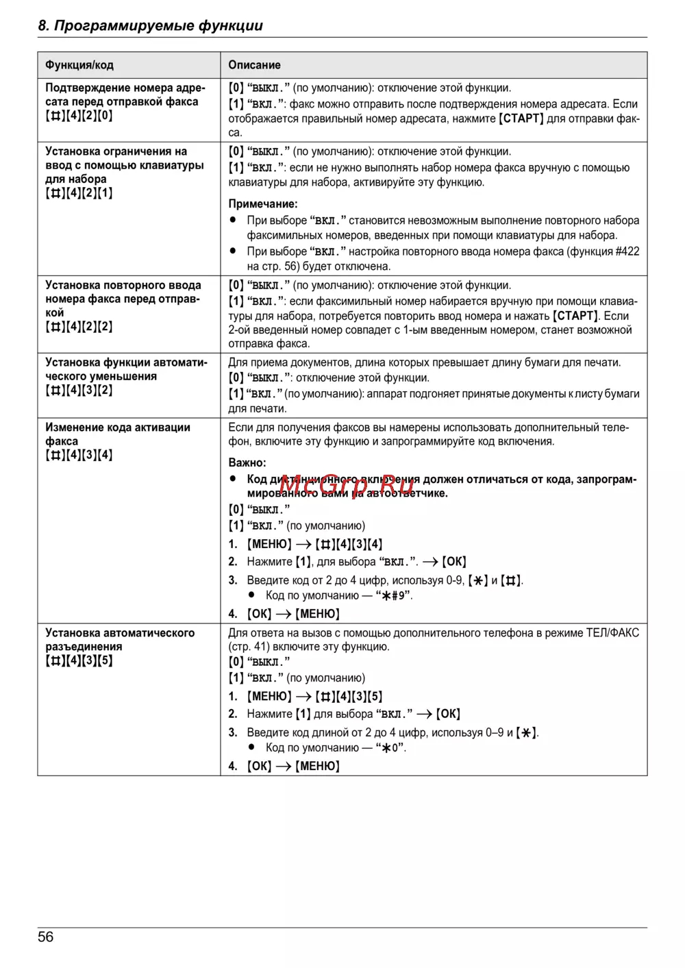 Panasonic KX-MB1500 RU [56/84] Программируемые функции