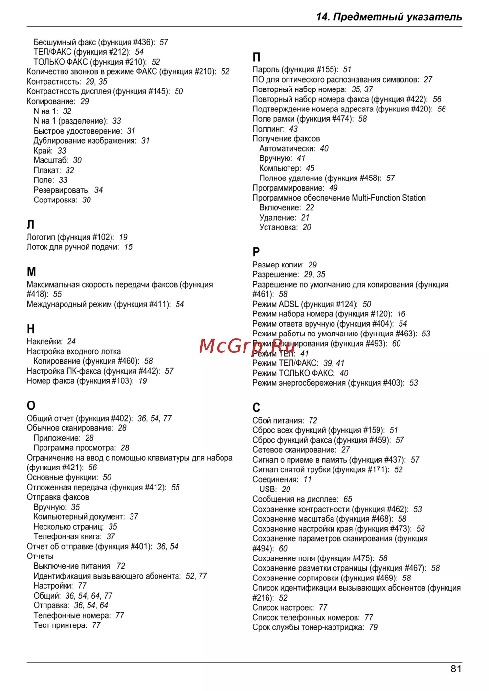 Panasonic KX-MB1500 RU [81/84] Предметный указатель
