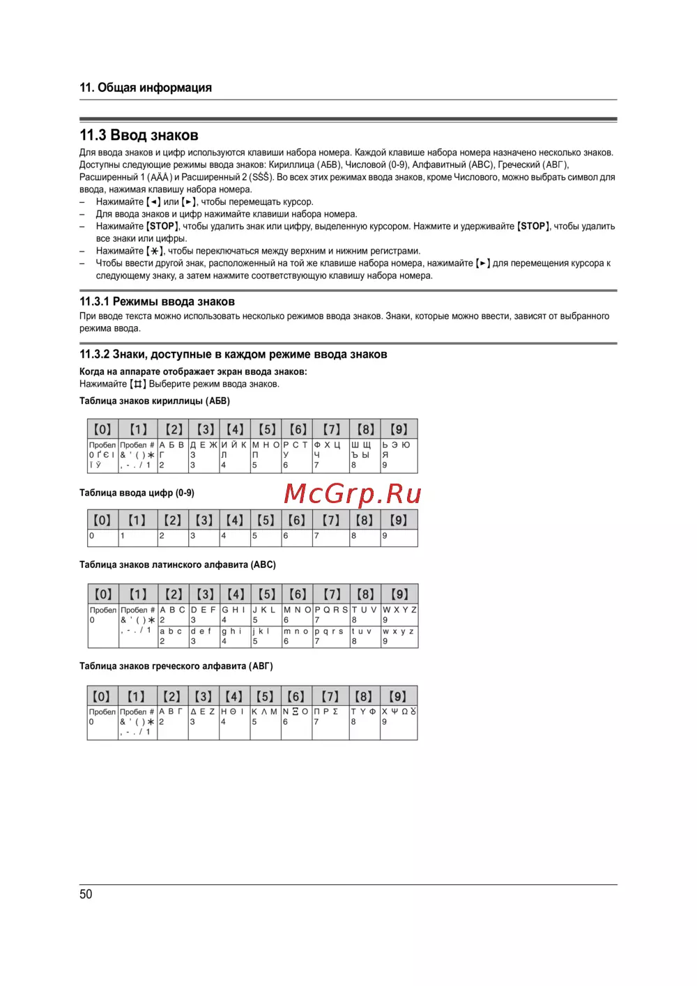- Знаки доступные в каждом режиме ввода знаков p.50