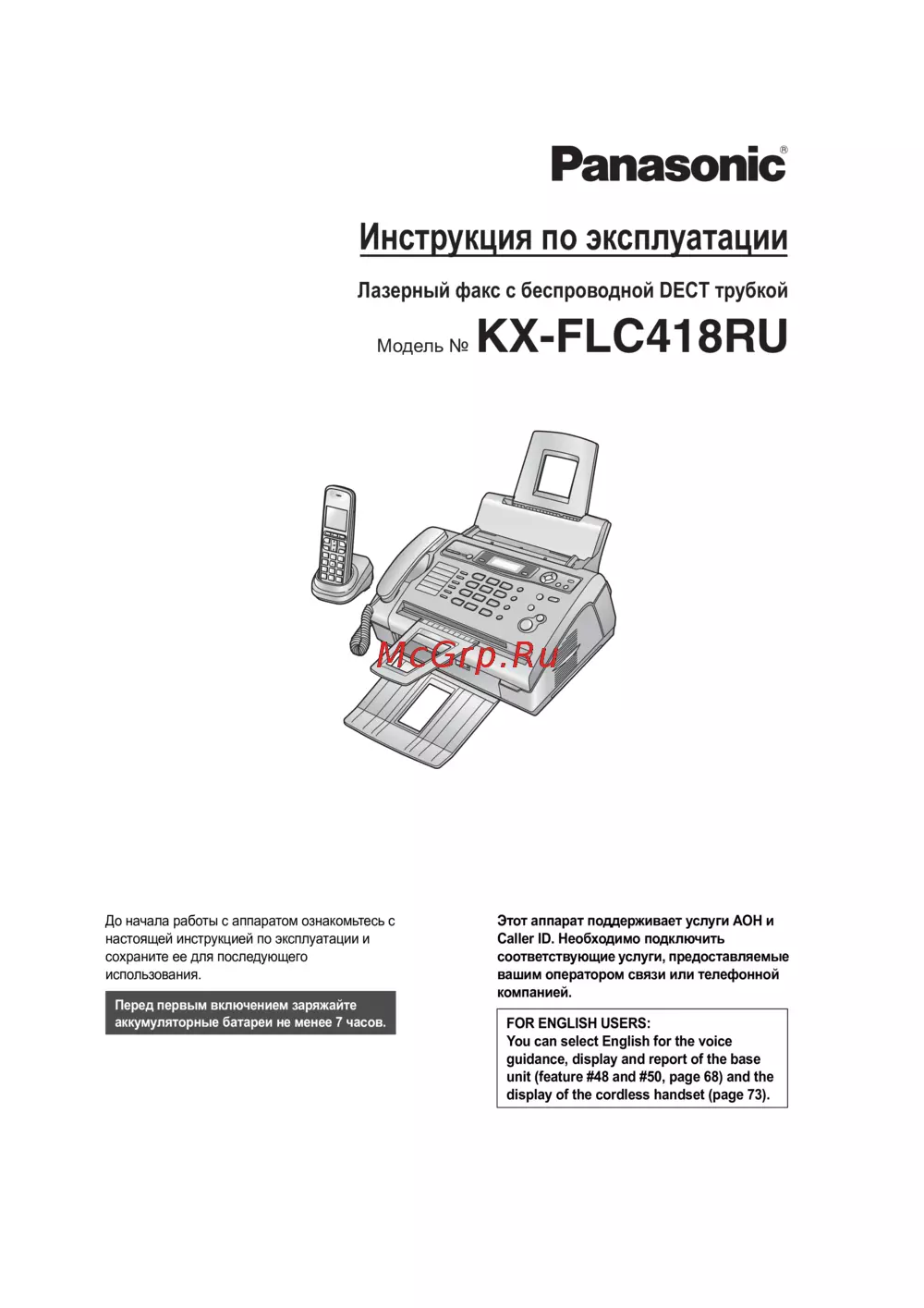 Panasonic KX-FLC418 RU Инструкция по эксплуатации онлайн