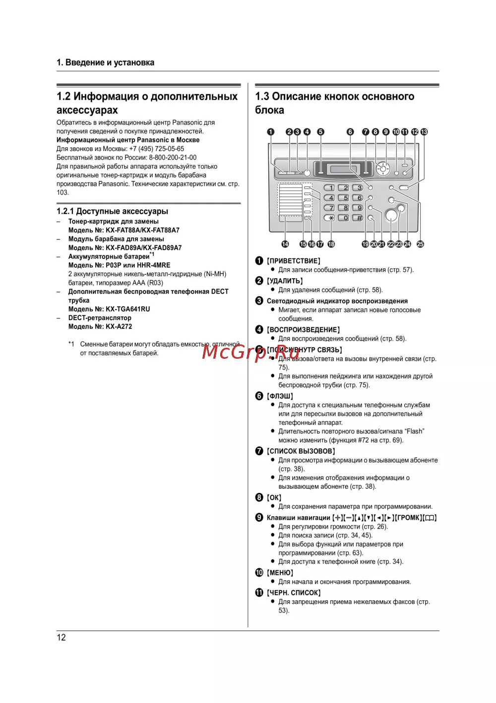 Panasonic KX-FLC418 RU [12/108] Описание кнопок основного блока