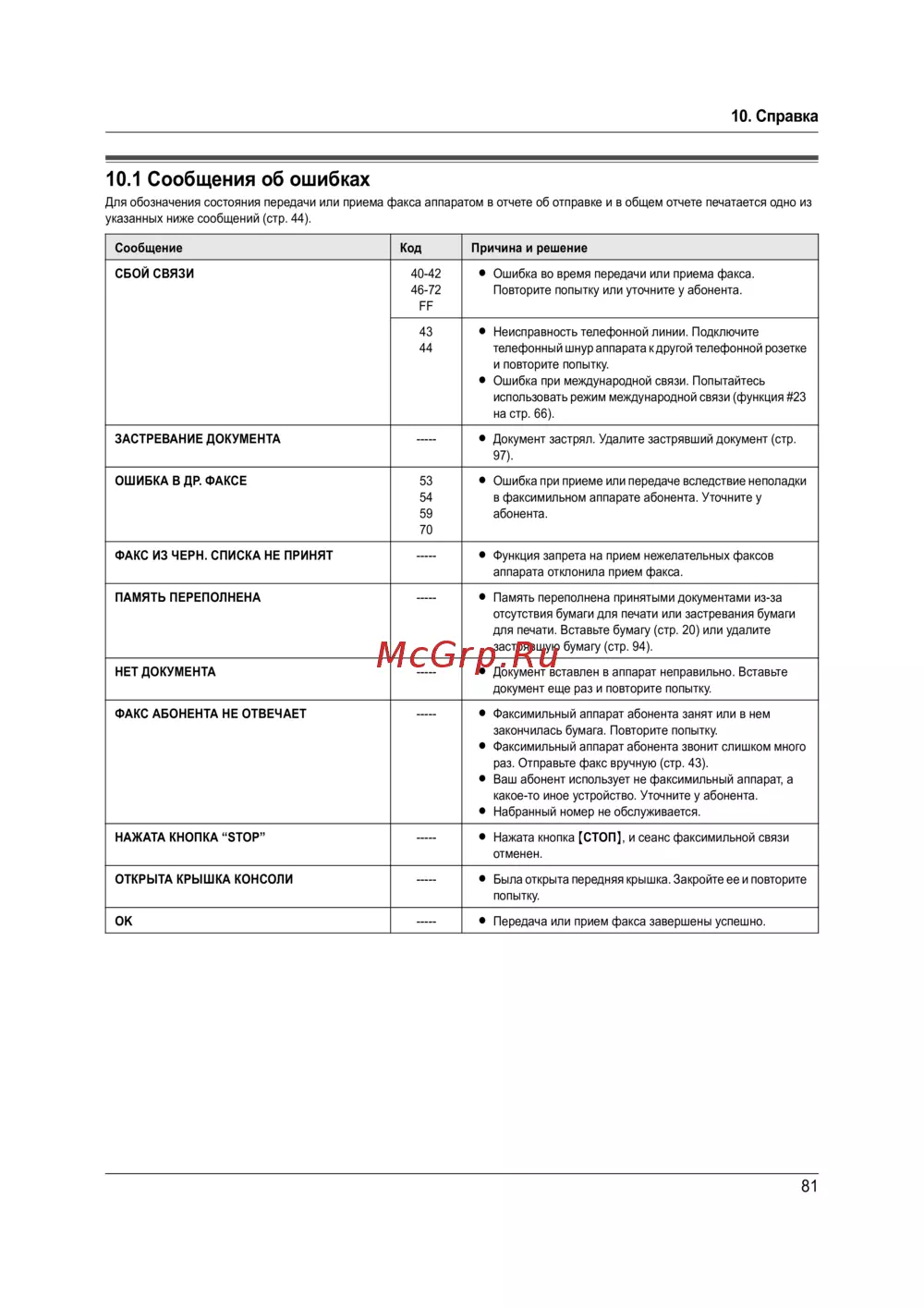 указанных ниже сообщений (стр. 44).
