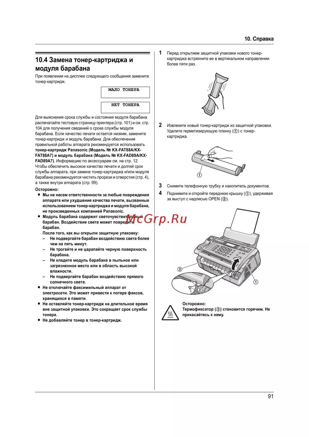 службы аппарата, при замене тонер-картриджа и/или модуля