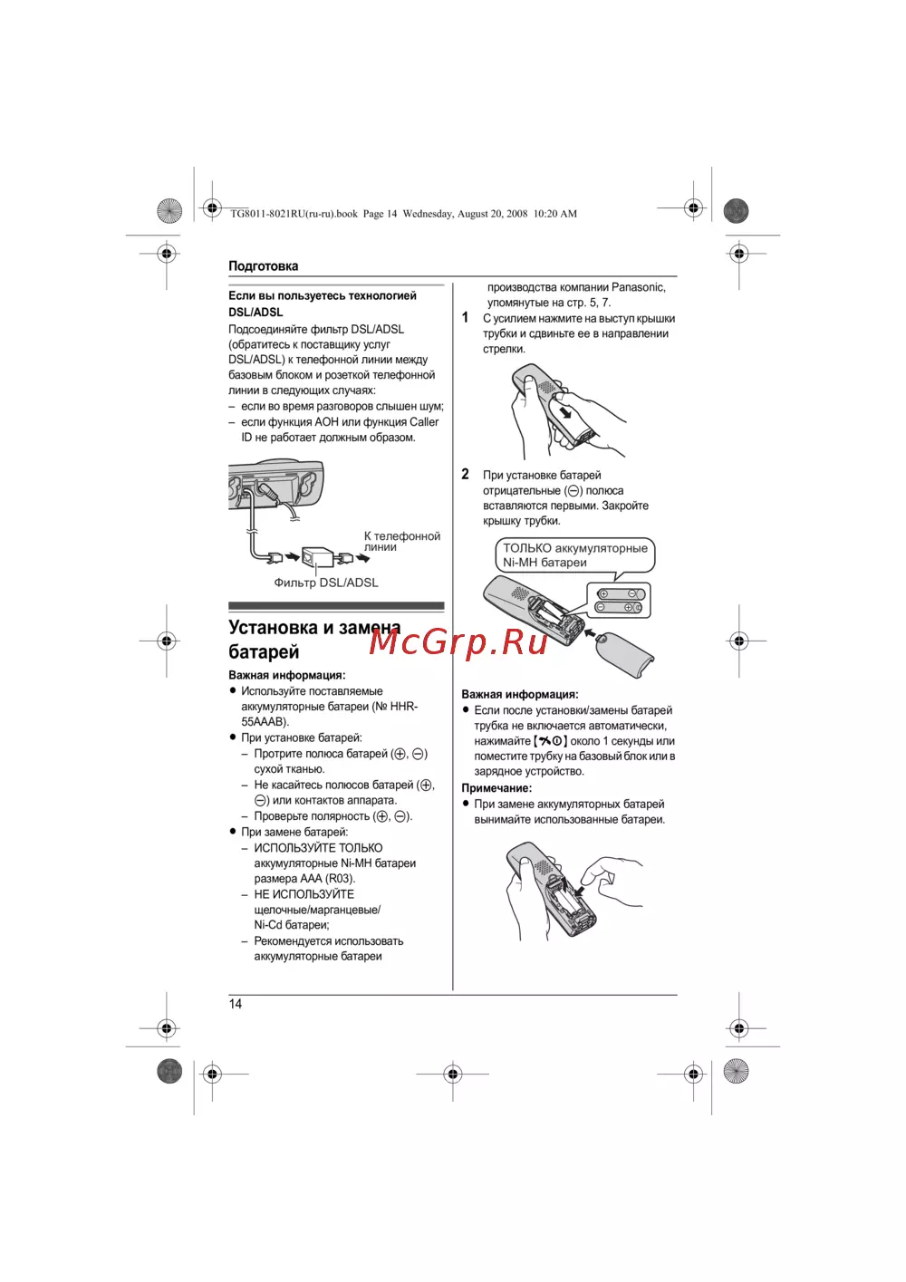 Узнайте, как правильно подключить фильтр DSL/ADSL и заменить аккумуляторные батареи. Следуйте рекомендациям для обеспечения стабильной работы устройства.