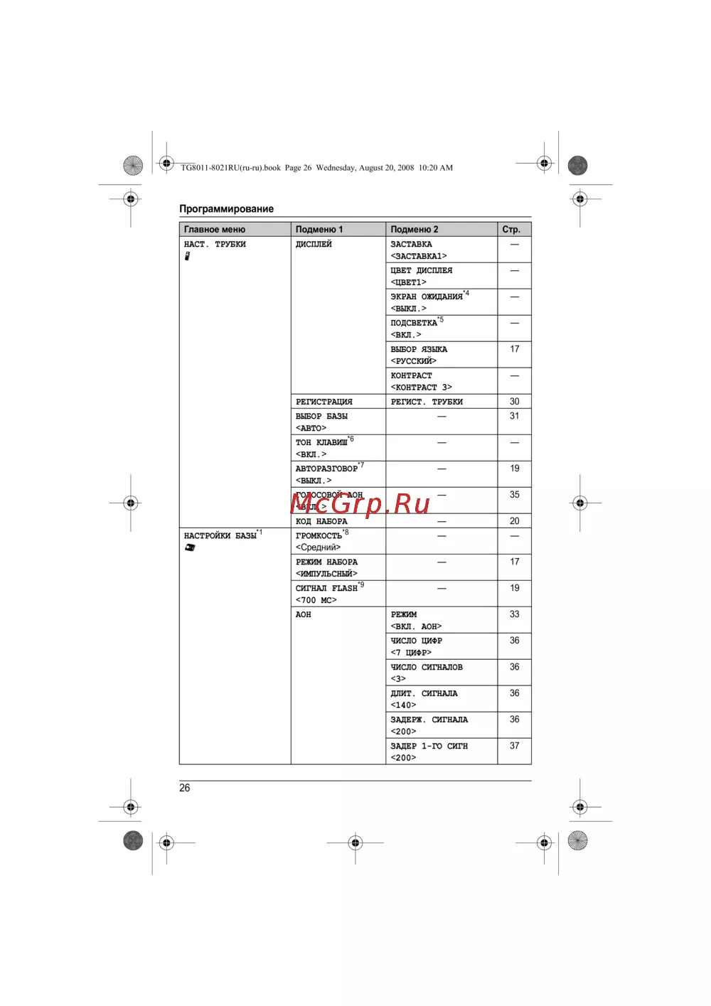 TG8011-8021RU(ru-ru).book Page 26 Wednesday, August 20, 2008 10:20 AM