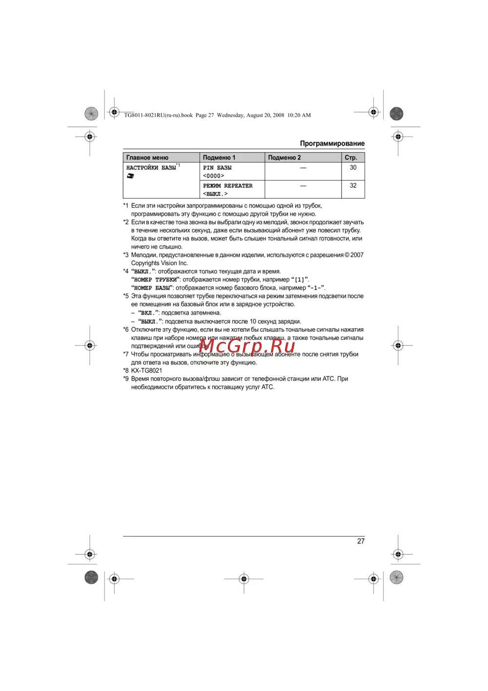 TG8011-8021RU(ru-ru).book Page 27 Wednesday, August 20, 2008 10:20 AM