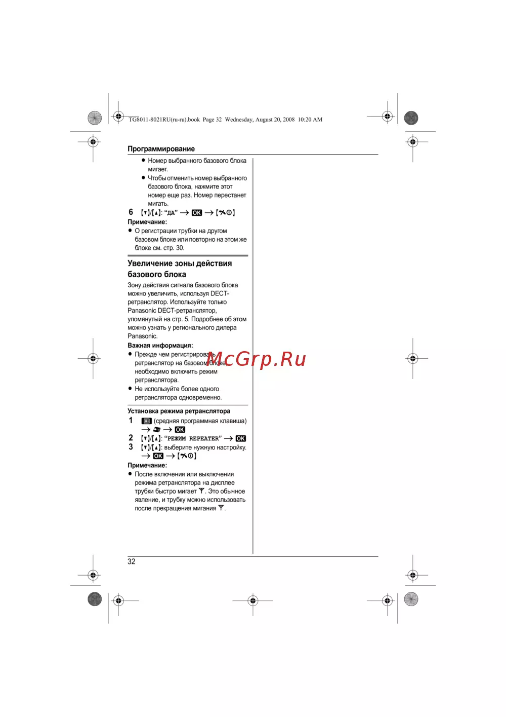 TG8011-8021RU(ru-ru).book Page 32 Wednesday, August 20, 2008 10:20 AM