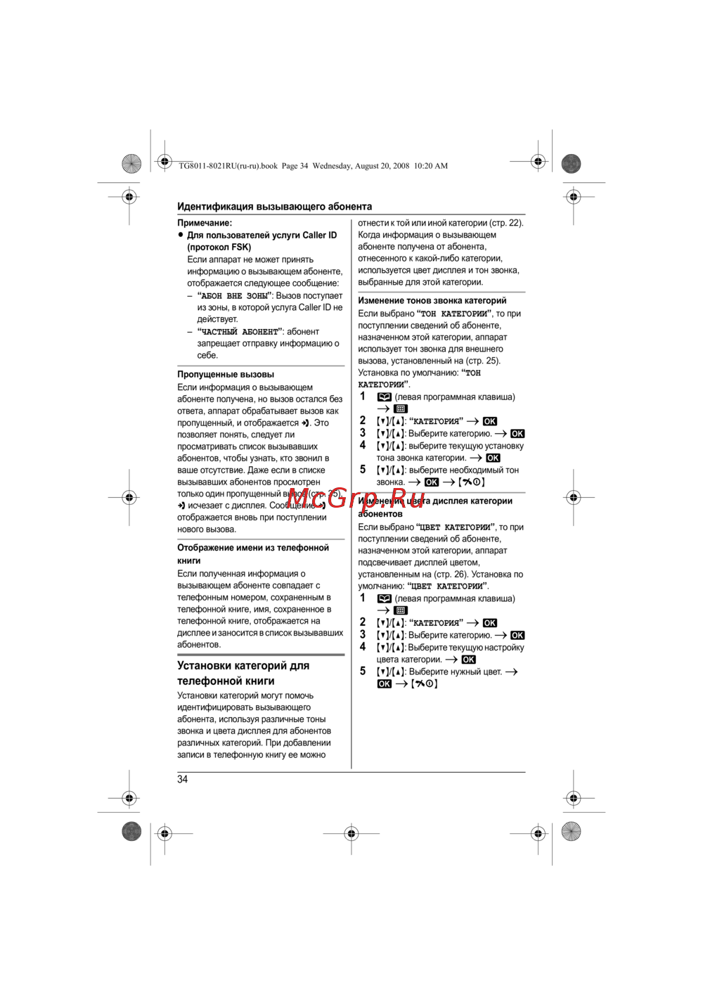 Panasonic KX-TG8012 — идентификация вызывающего абонента и управление звонками [34/60]