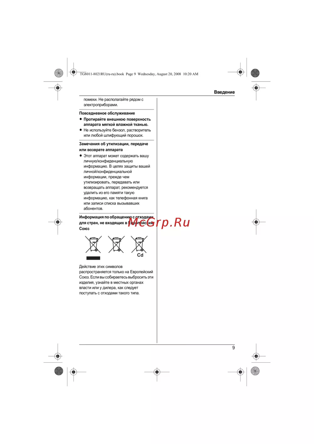 TG8011-8021RU(ru-ru).book Page 9 Wednesday, August 20, 2008 10:20 AM