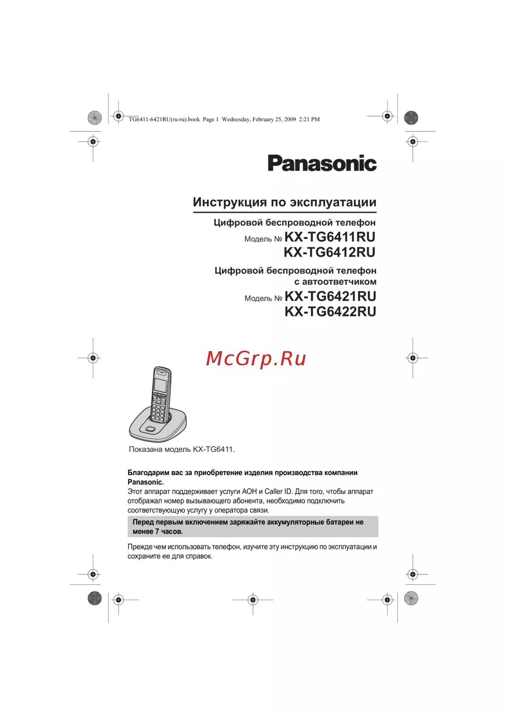 Panasonic KX-TG6411 — инструкция по эксплуатации цифрового беспроводного телефона [1/56]