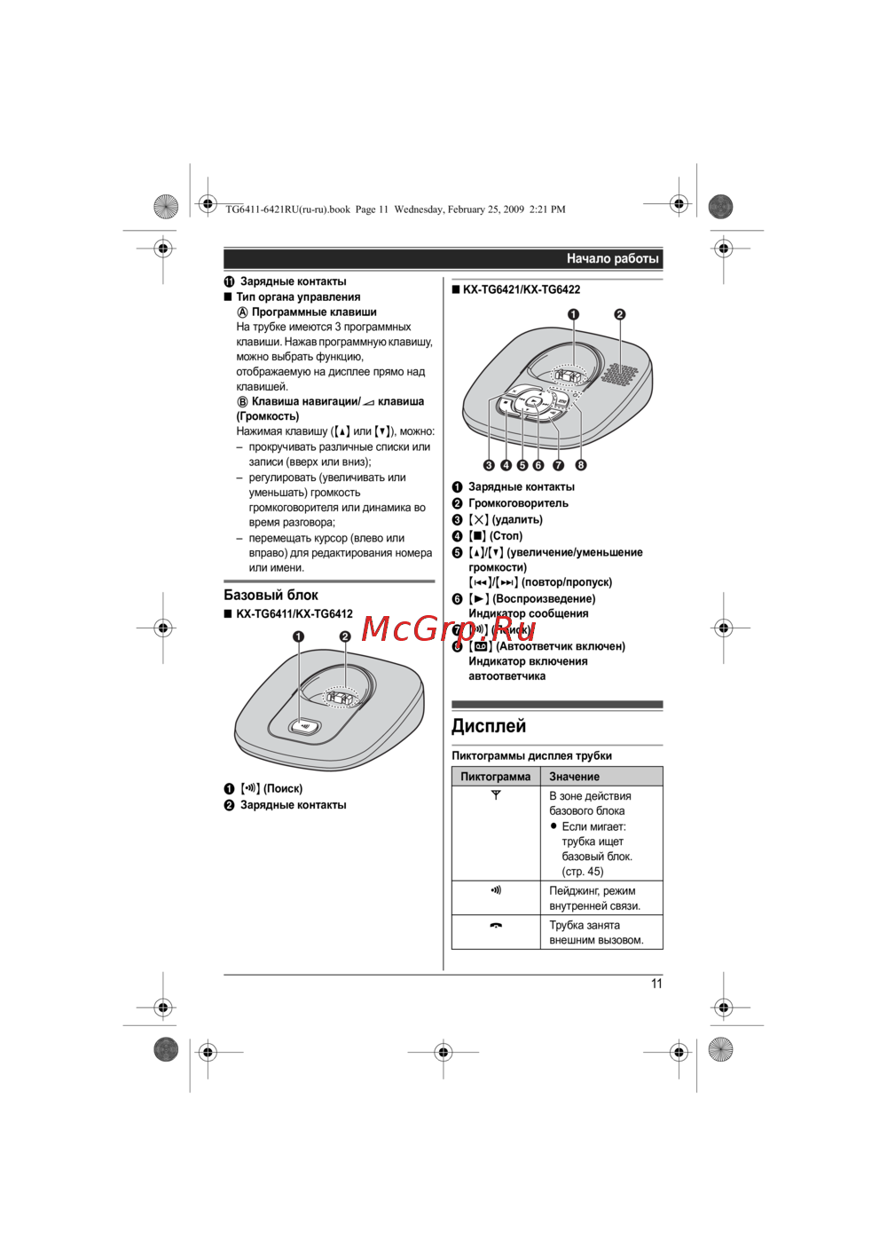 TG6411-6421RU(ru-ru).book Page 11 Wednesday, February 25, 2009 2:21 PM