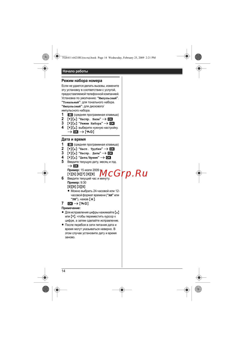 TG6411-6421RU(ru-ru).book Page 14 Wednesday, February 25, 2009 2:21 PM