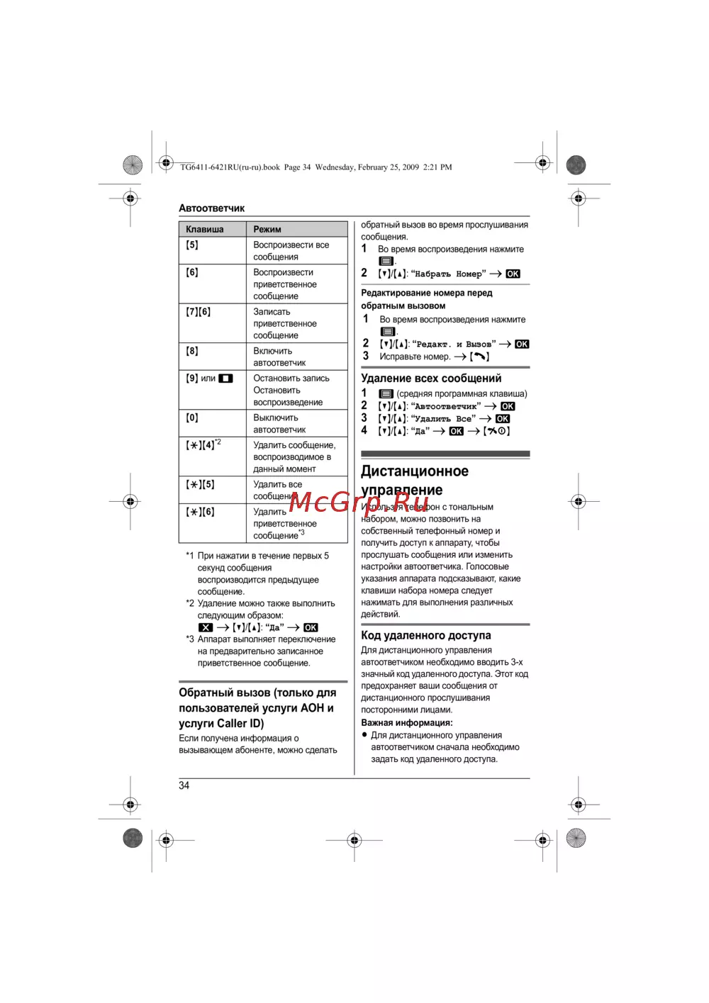 - Дистанционное использование автоответчика 1 p.35