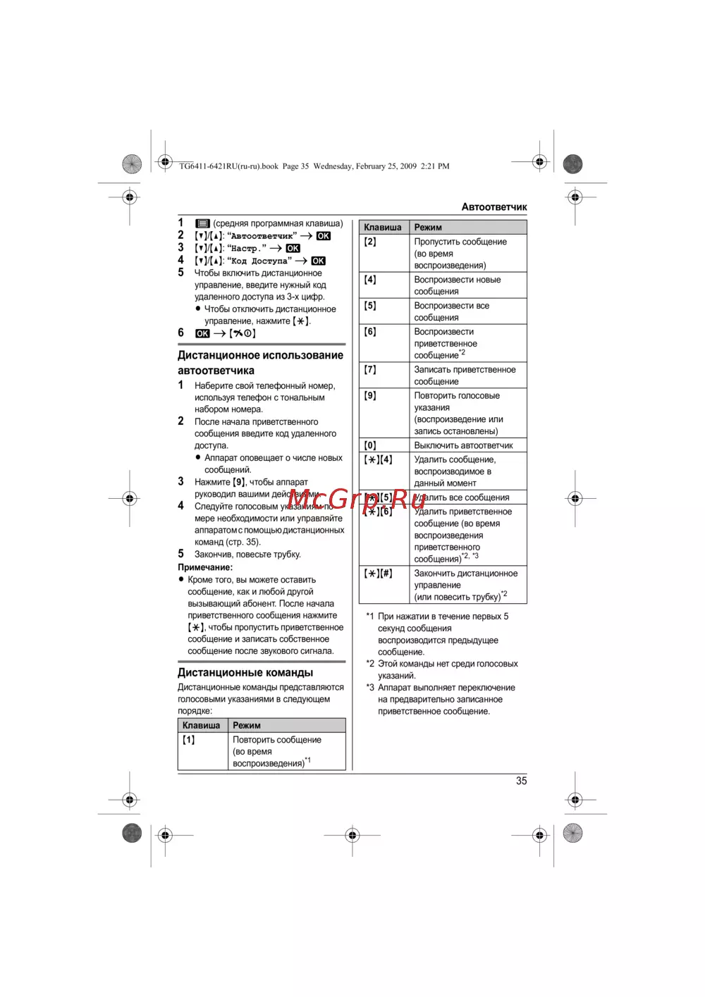 Panasonic KX-TG6411 — инструкция по использованию автоответчика и дистанционному управлению [35/56]