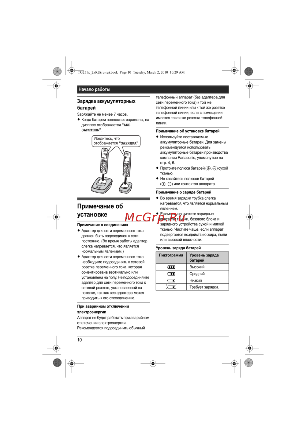 TG251x_2xRU(ru-ru).book Page 10 Tuesday, March 2, 2010 10:29 AM