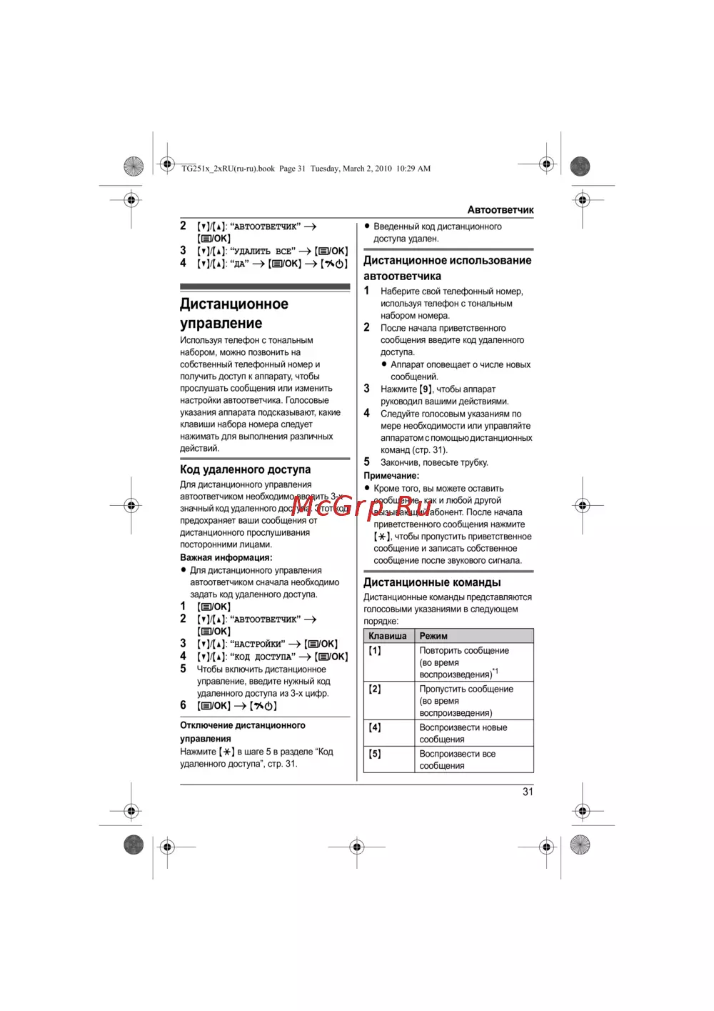 Panasonic KX-TG2511 — дистанционное управление автоответчиком: инструкция и советы [31/52]