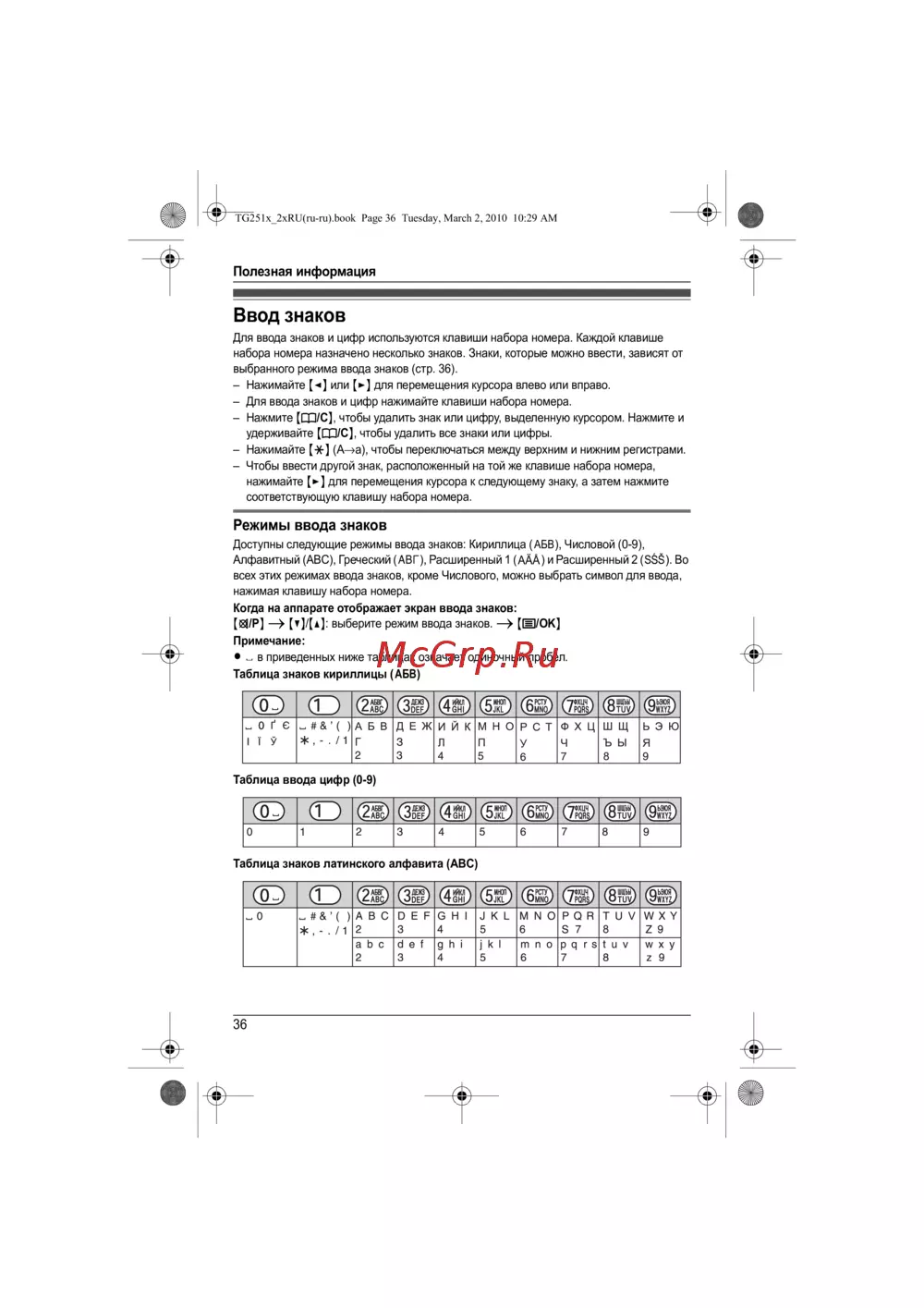 TG251x_2xRU(ru-ru).book Page 36 Tuesday, March 2, 2010 10:29 AM