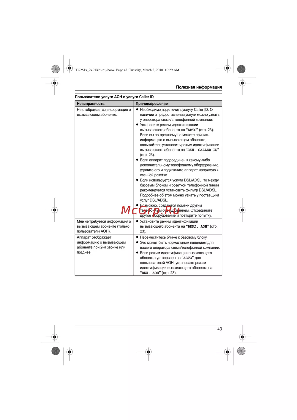 TG251x_2xRU(ru-ru).book Page 43 Tuesday, March 2, 2010 10:29 AM