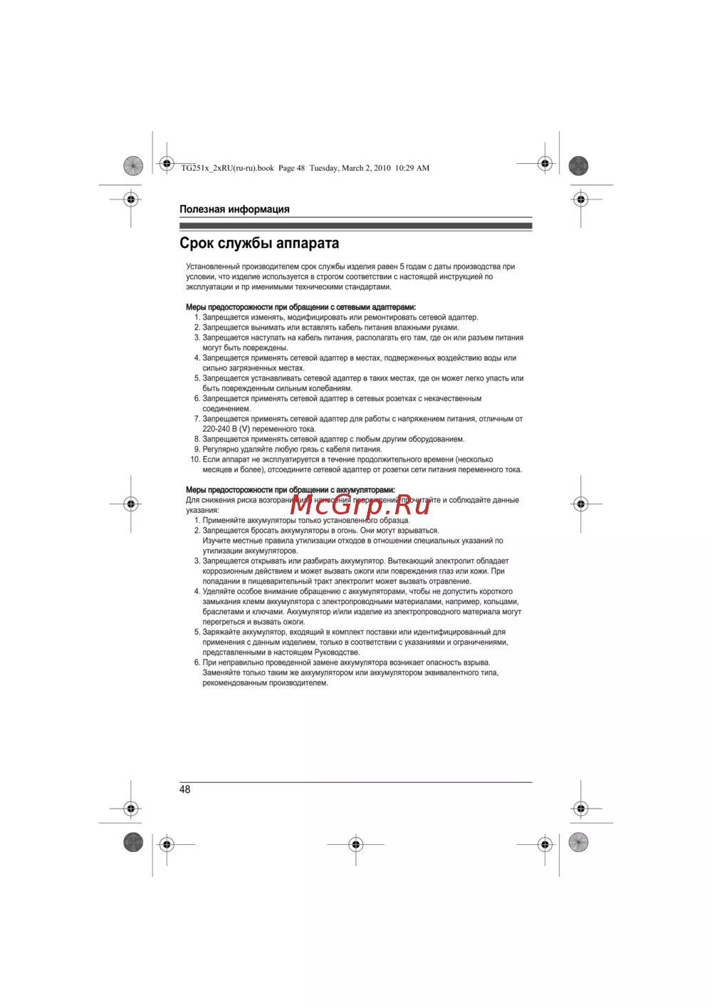 TG251x_2xRU(ru-ru).book Page 48 Tuesday, March 2, 2010 10:29 AM