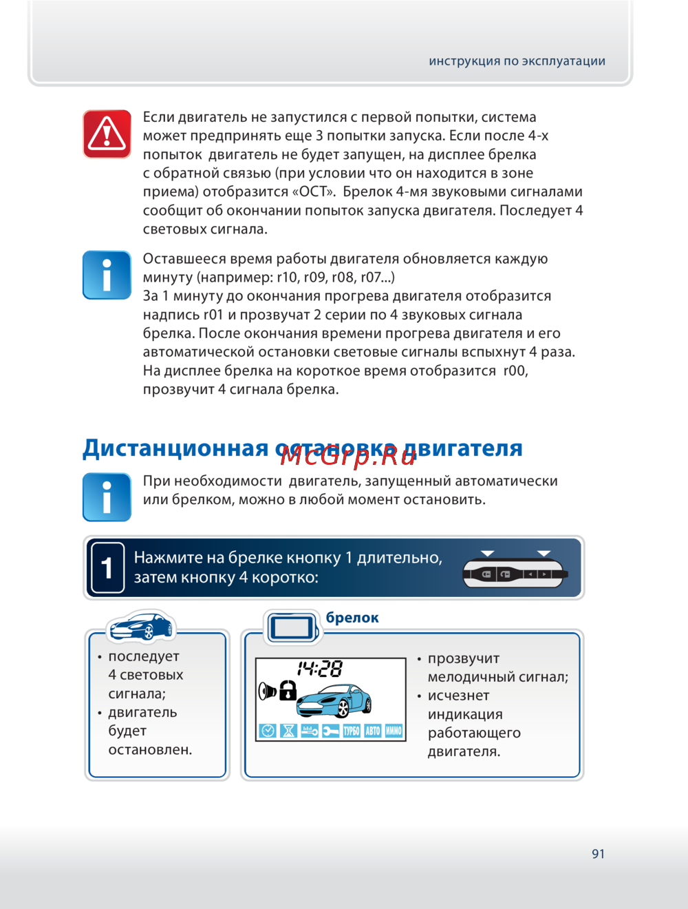 - Подготовка к дистанционному запуску в автомобилях с ручной кпп p.87