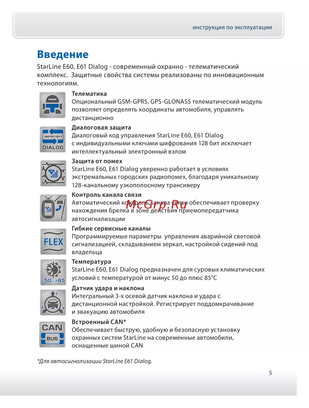 - Starline е60 e61 dialog современный охранно телематический комплекс защитные свойства системы реализованы по инновационным технологиям p.5