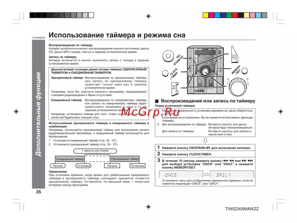 1 Установите ежедневный таймер (стр. 35 - 37).