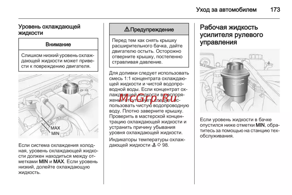 Opel MERIVA MY 12.5 (2012) [175/245] Уровень охлаждающей жидкости