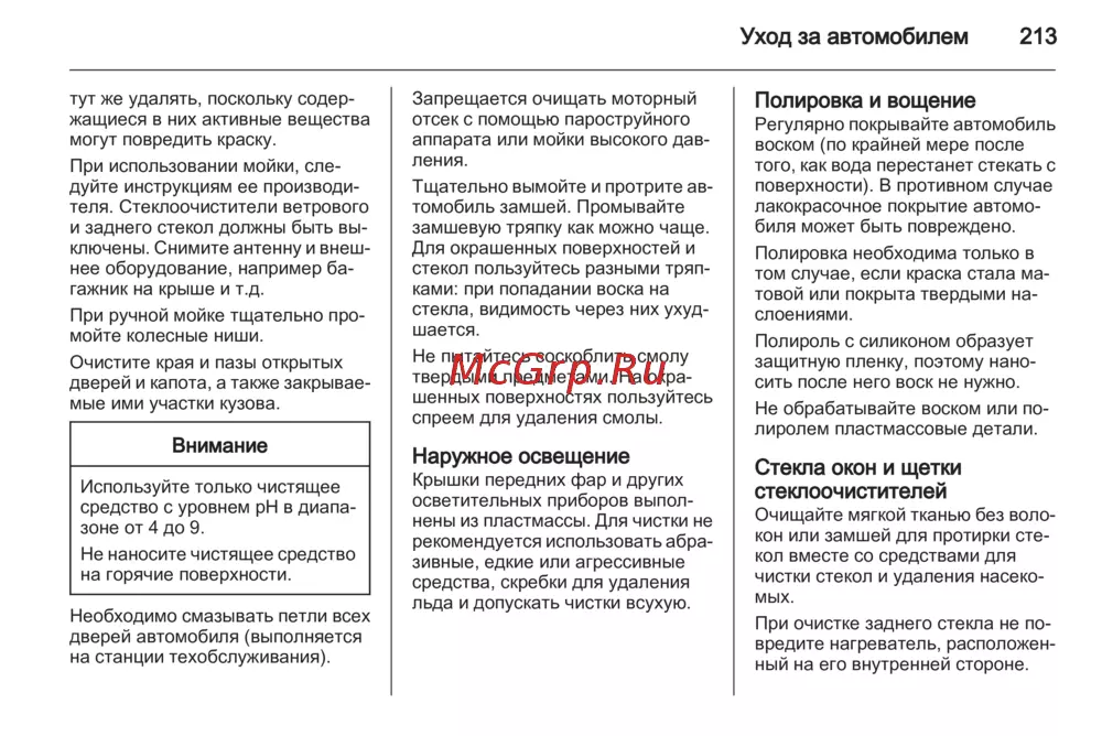 Opel MERIVA MY 12.5 (2012) — правила ухода за автомобилем: советы по мойке и полировке [215/245]