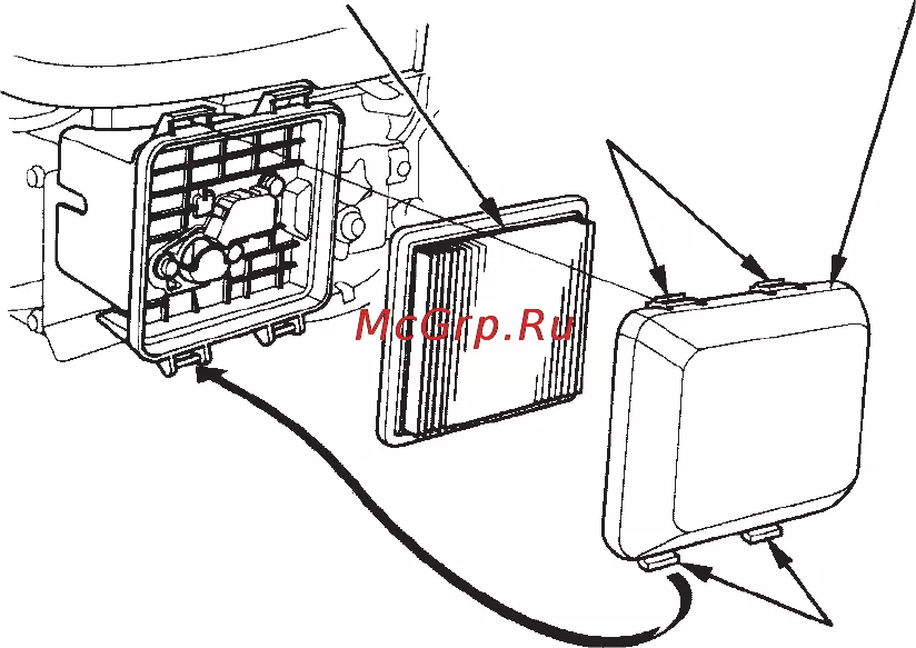 - Фиксирующие защелки на крышке фильтра две верхних защелки и две нижних защелки p.19