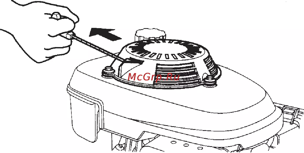 - Снимите возвратный стартер выкрутив три 6 мм гайки p.21