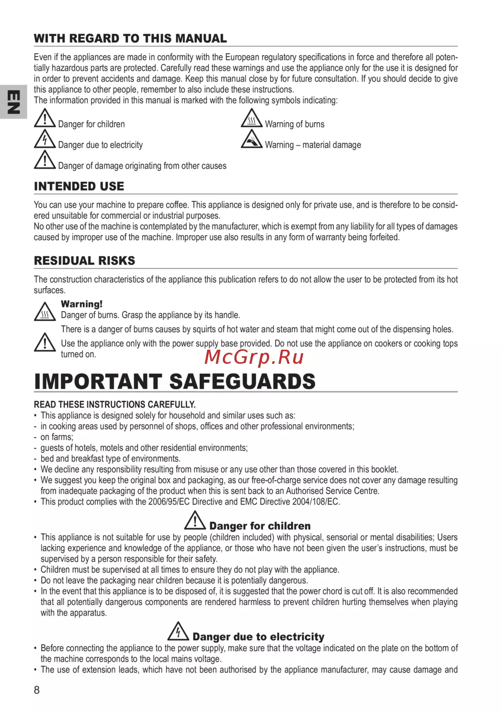- Important safeguards p.8