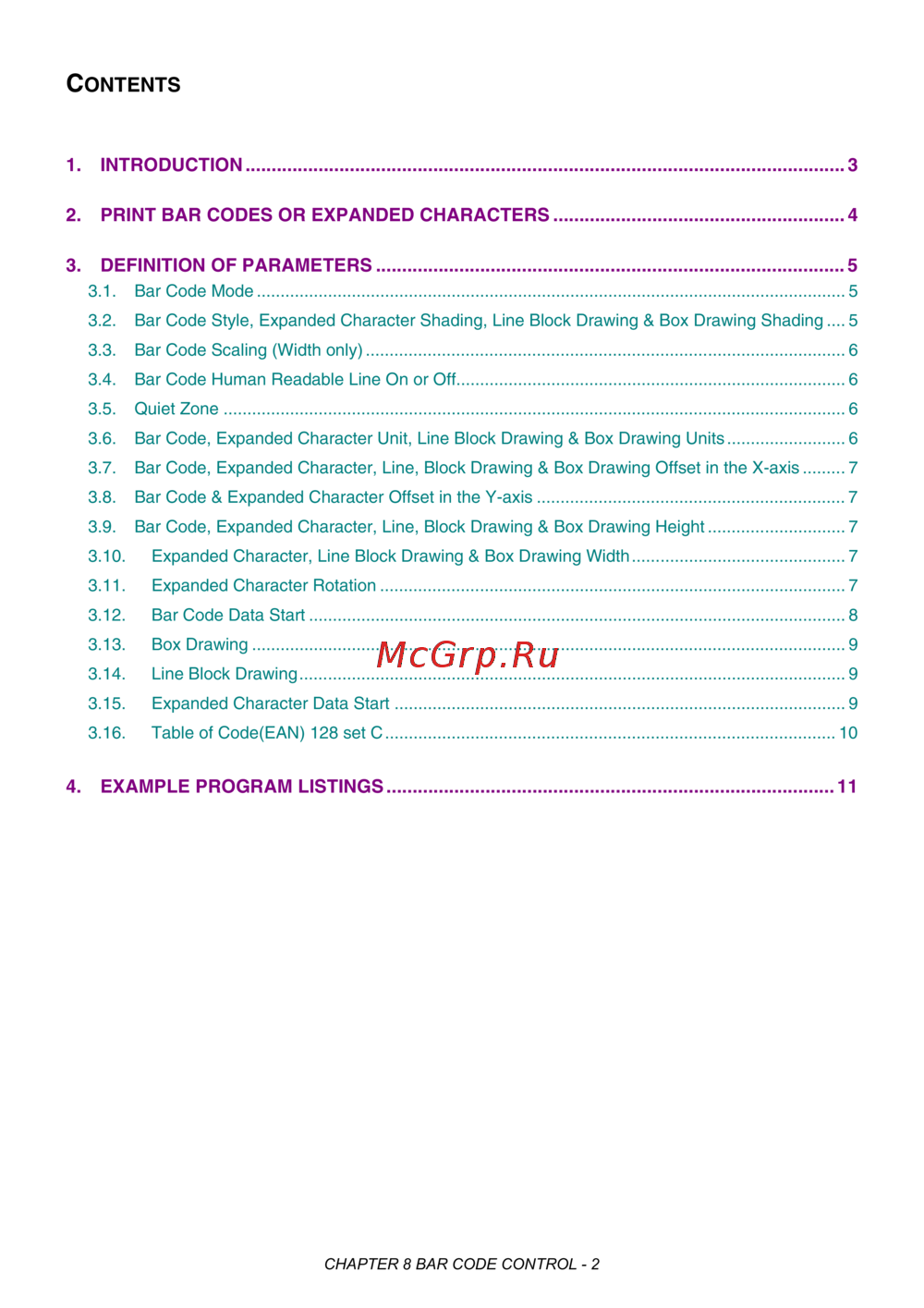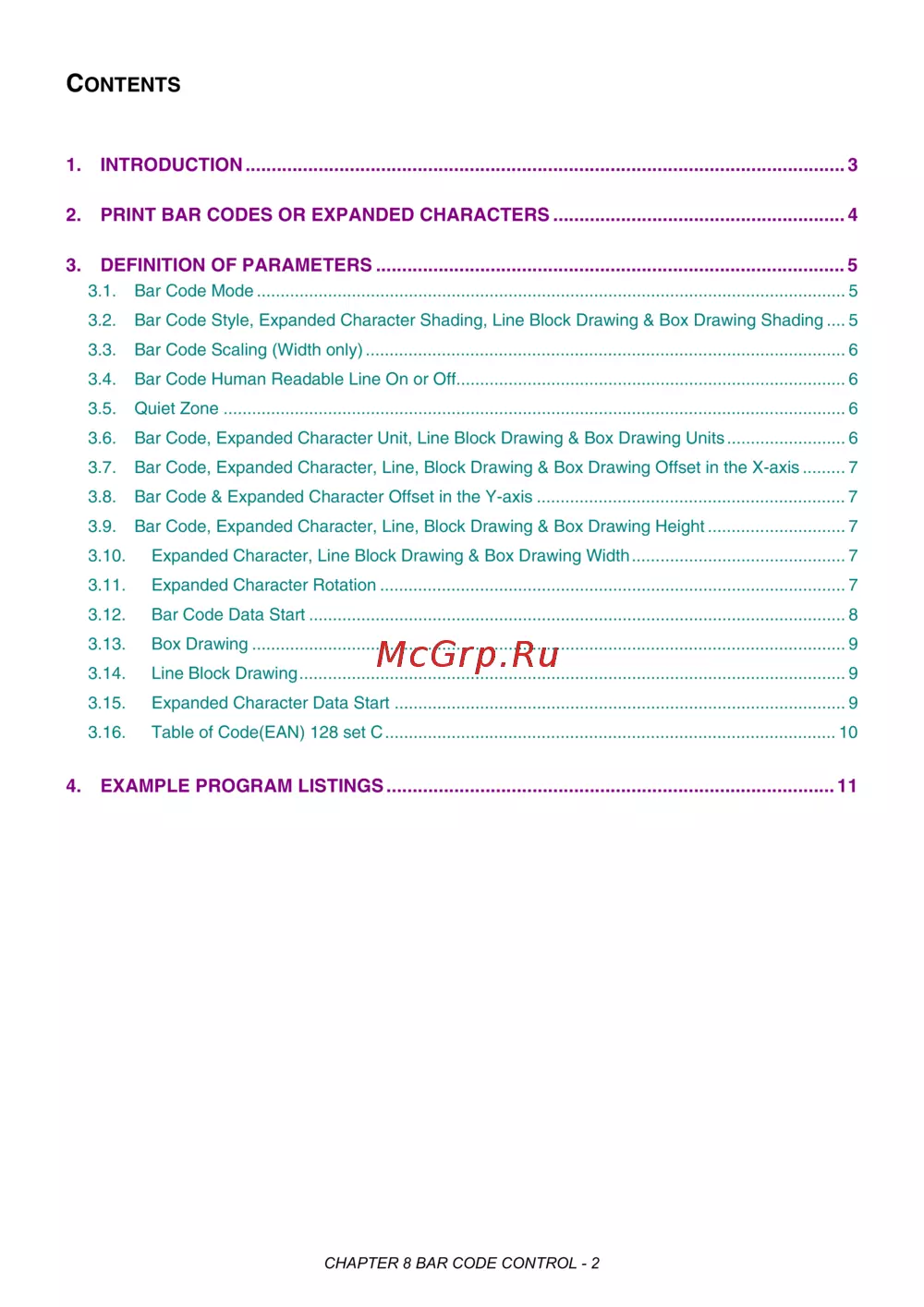 3.12. Bar Code Data Start ................................................................................................................. 8