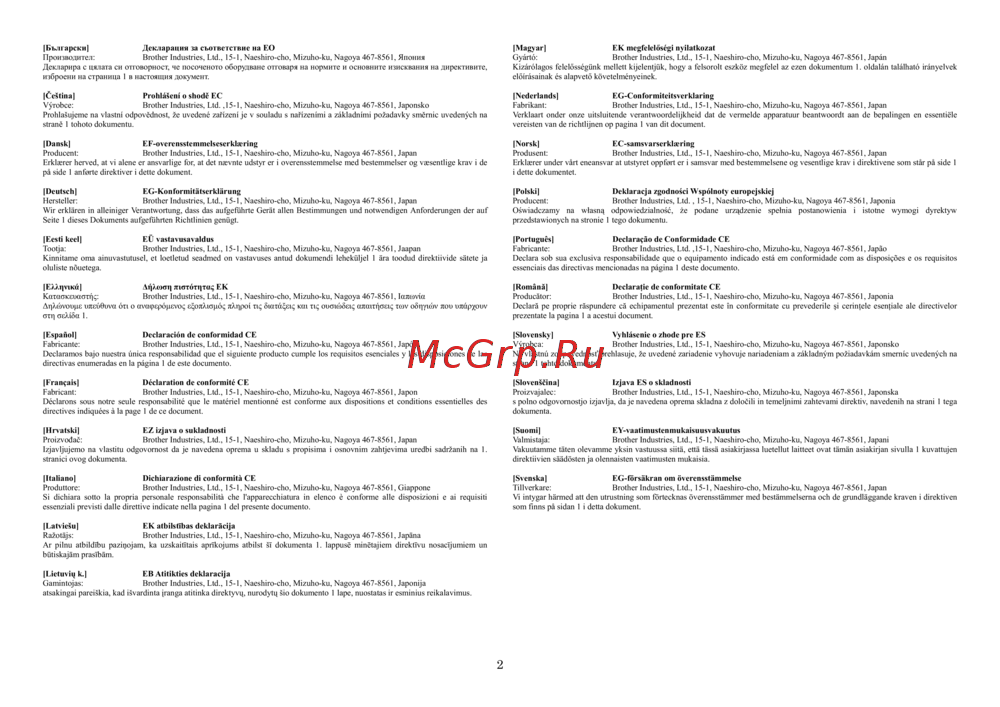 Brother HL-2240DR — декларация за съответствие на ЕС за оборудване [2/2]