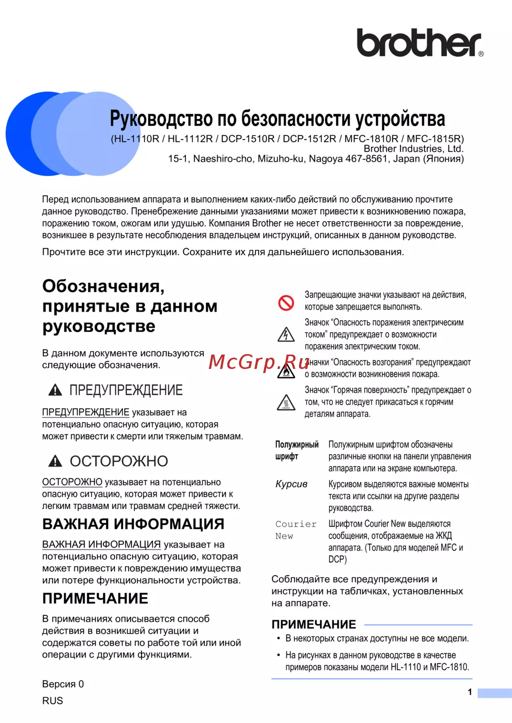 - Ограничение использования аппарата только для моделей mfc p.13