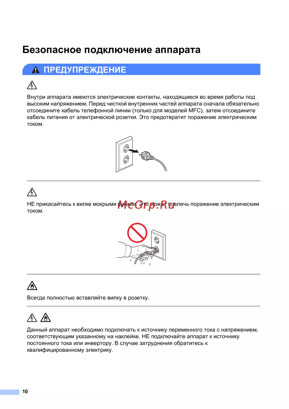 Brother HL-1110R — правила безопасного подключения электрических аппаратов [10/19]