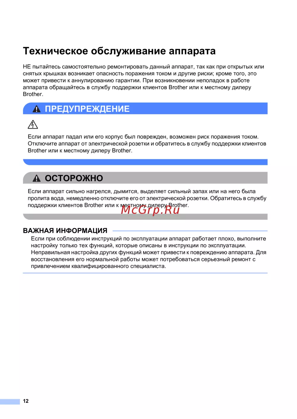 аппарата обращайтесь в службу поддержки клиентов Brother или к местному дилеру