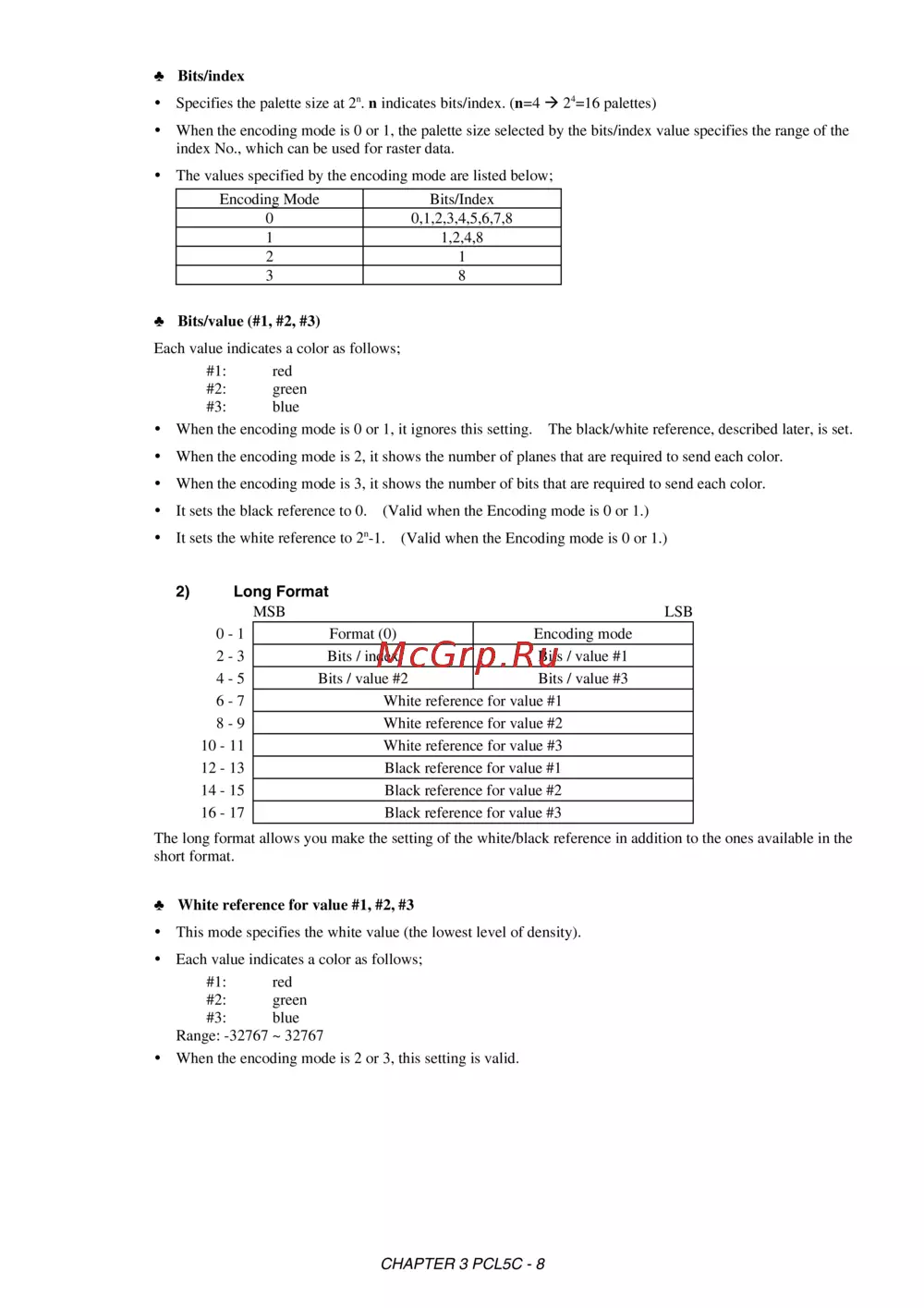 When the encoding mode is 0 or 1, the palette size selected by the bits/index value specifies the range of the