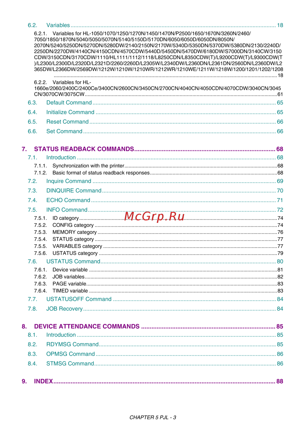6.2.1. Variables for HL-1050/1070/1250/1270N/1450/1470N/P2500/1650/1670N/3260N/2460/