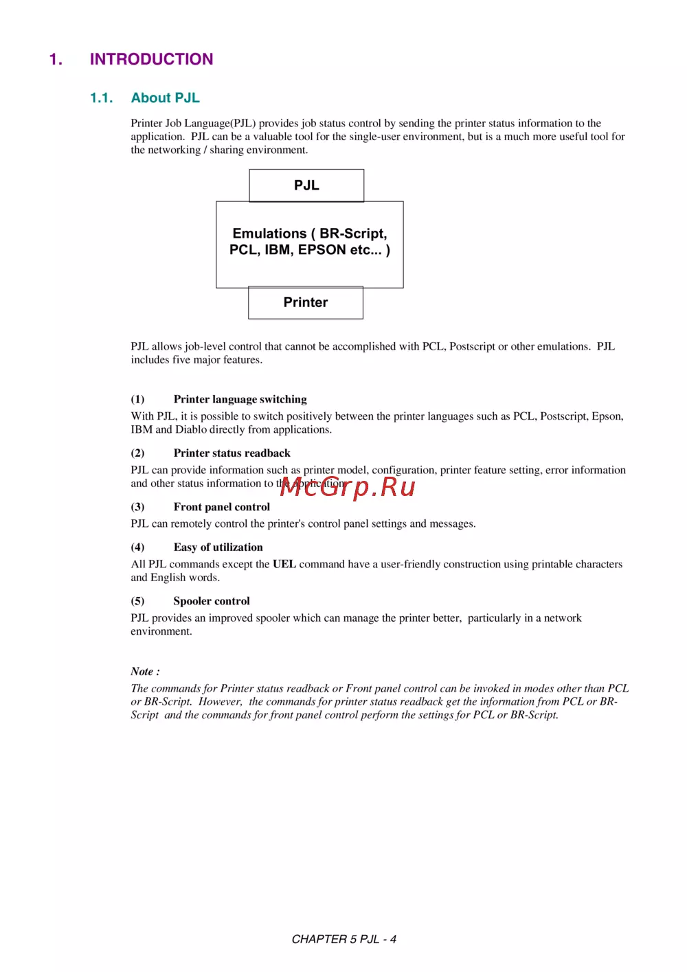 - Chapter 5 pjl printer job language p.5