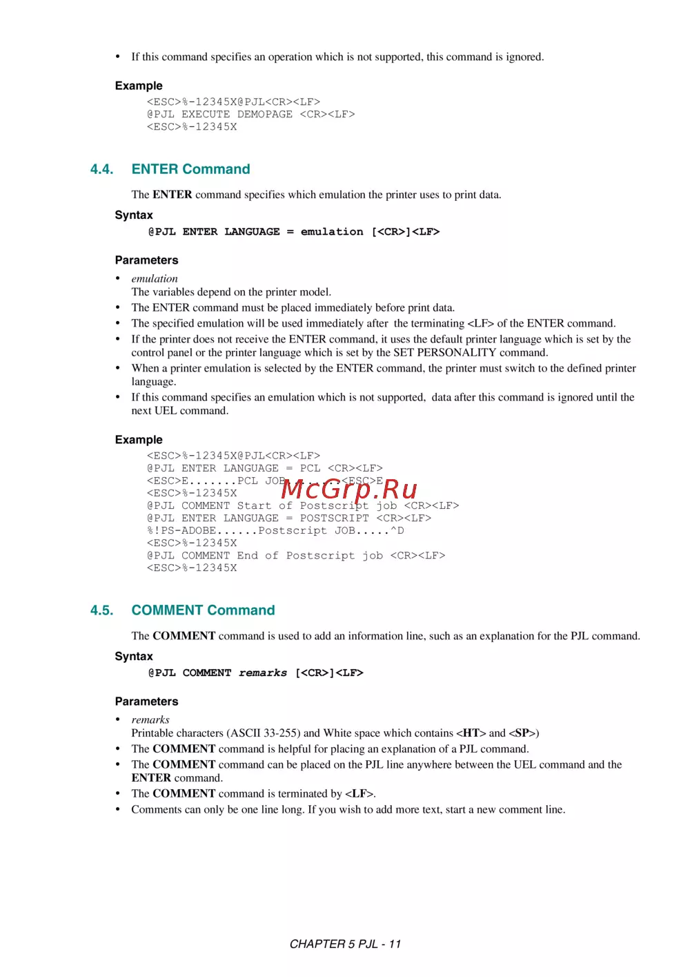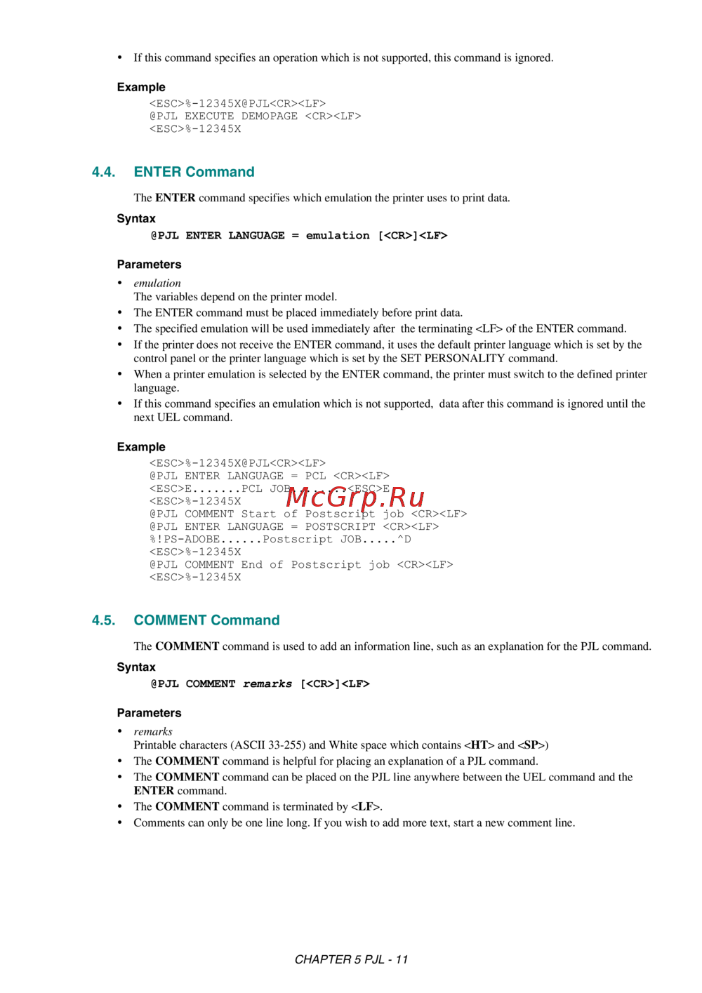 @PJL ENTER LANGUAGE = emulation [<CR>]<LF>