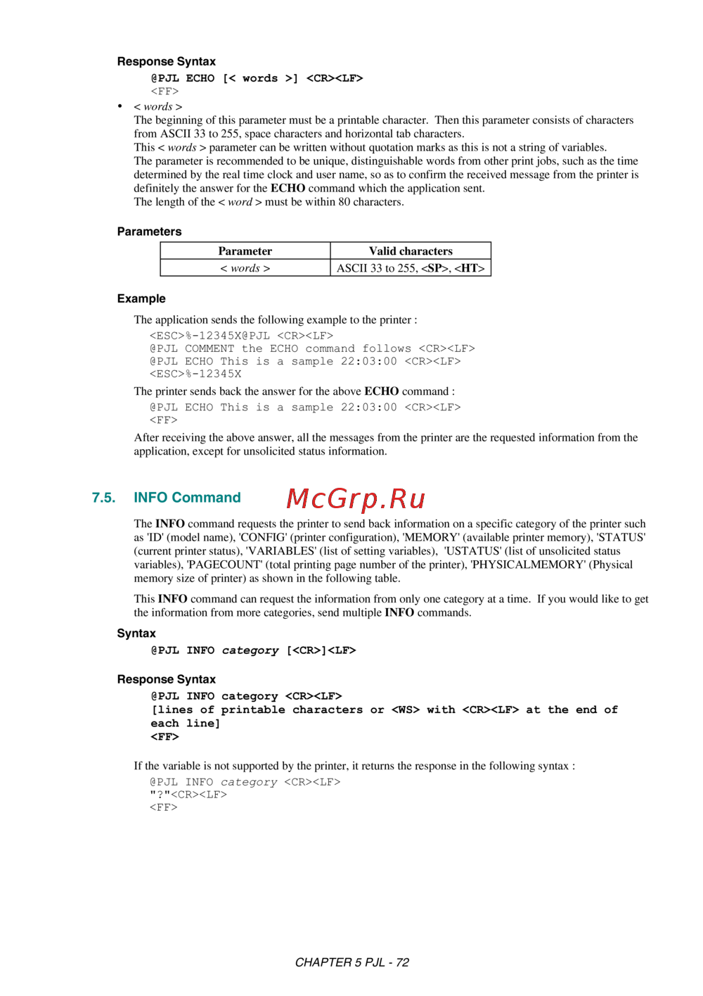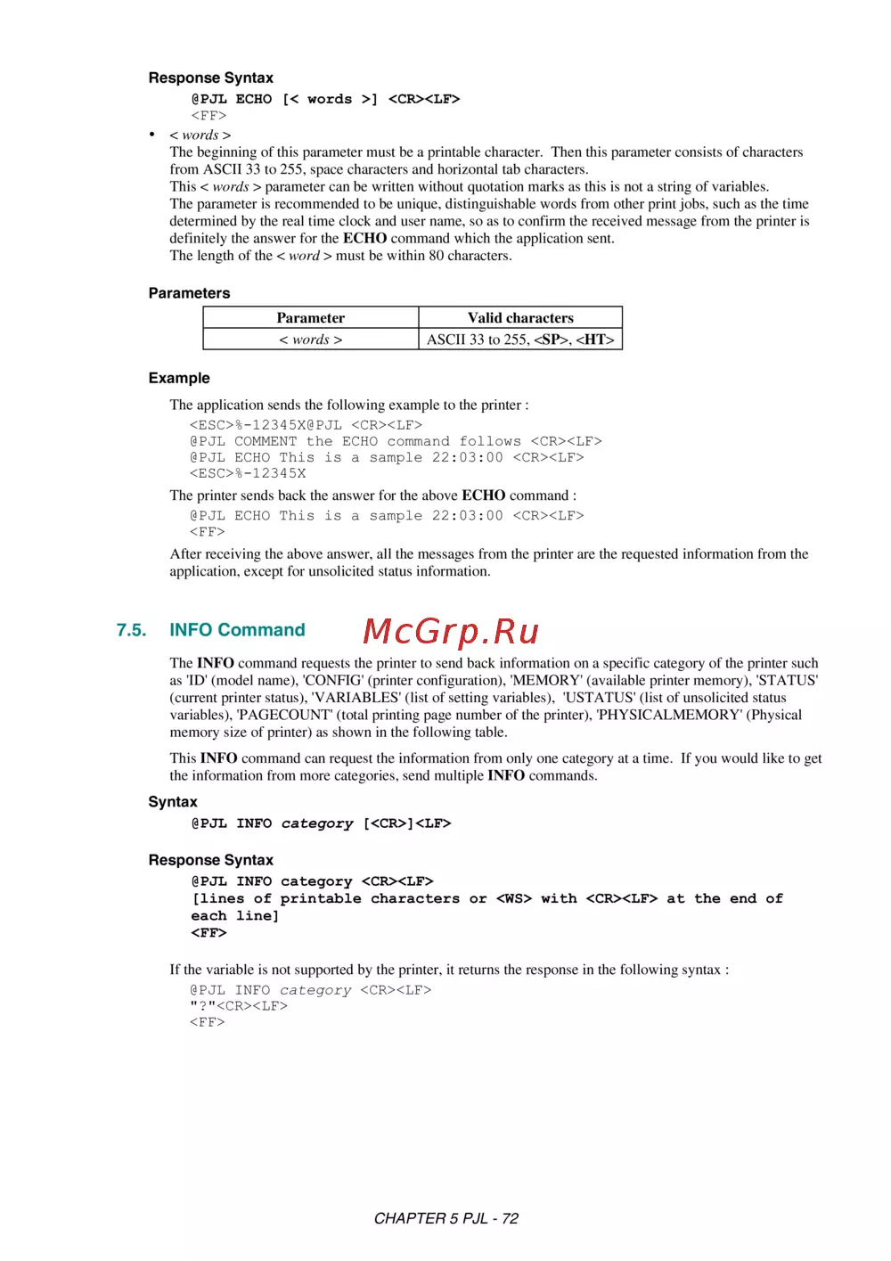 @PJL ECHO This is a sample 22:03:00 <CR><LF>