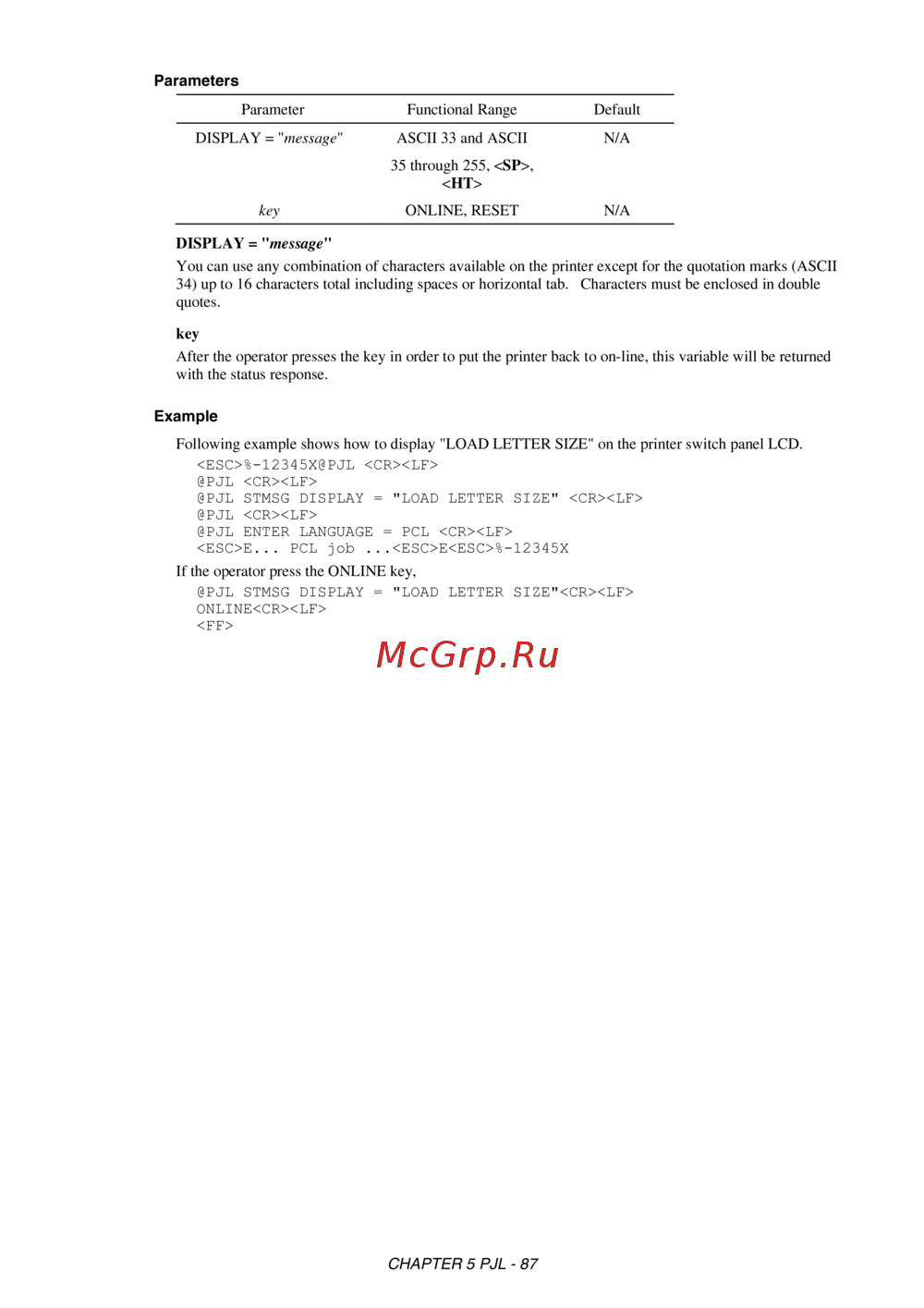 - Chapter 5 pjl printer job language p.5