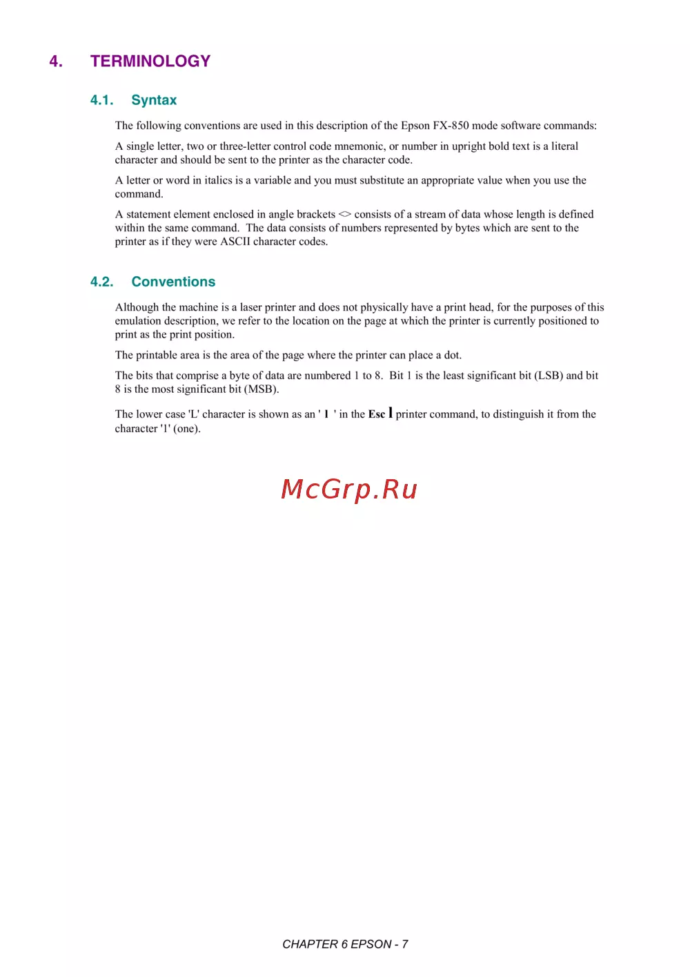 Brother HL-1110R — epson FX-850 emulation: command syntax and conventions guide [300/538]