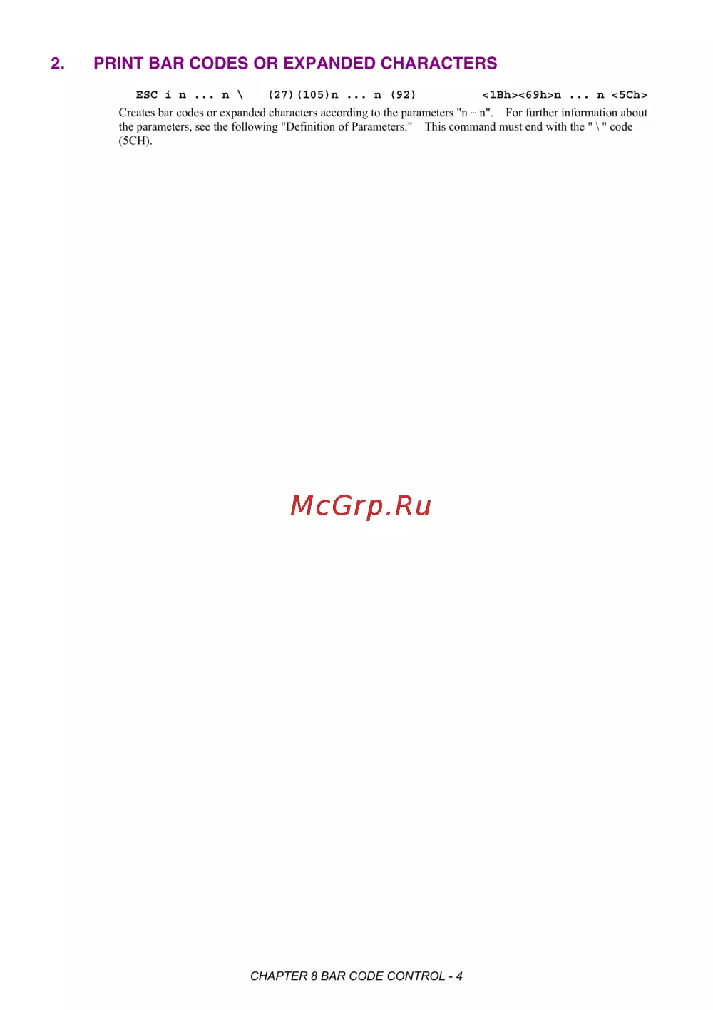 ESC i n ... n \ (27)(105)n ... n (92) <1Bh><69h>n ... n <5Ch>