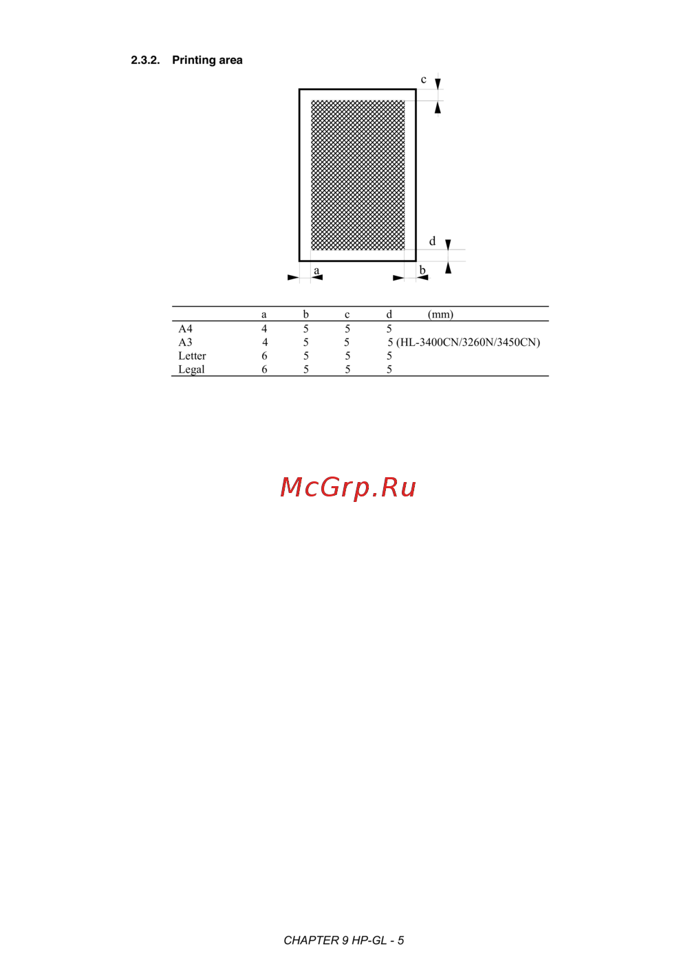 2.3.2. Printing area