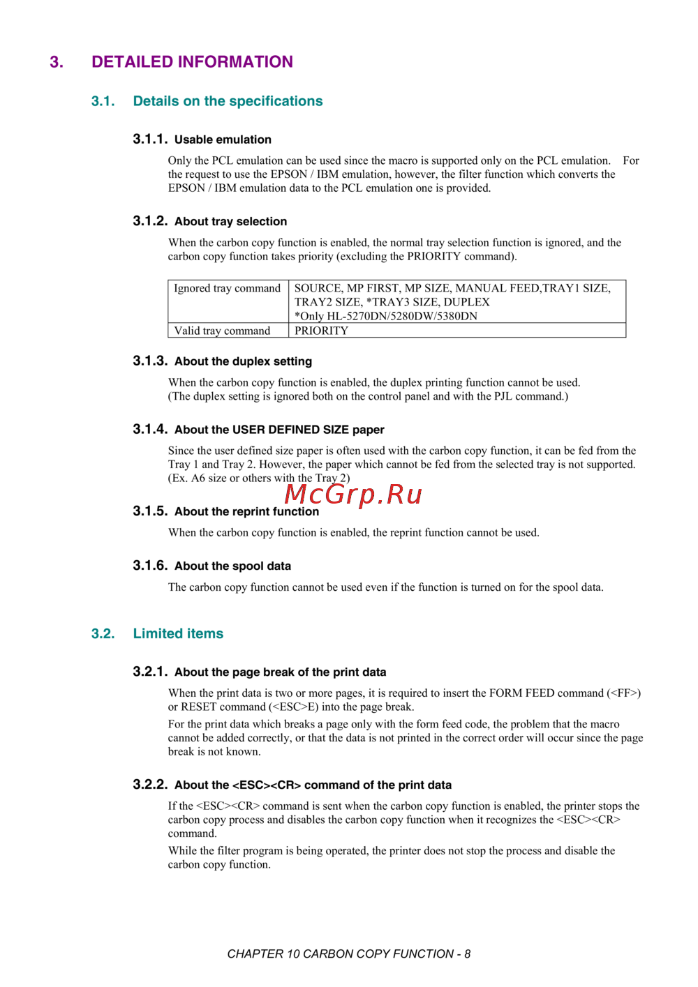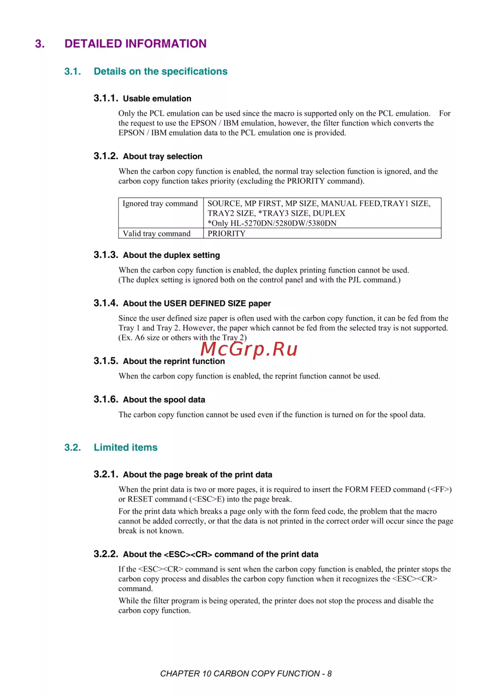 - The number of copies is 4 four the carbon copy function is enabled by sending the data only through the parallel interface 1st page the paper is fed from the tray 1 the id 128 macro is added 2nd page the paper is fed from the tray 2 the id 129 macro is added 3rd page the paper is fed from the mp tray no macro is added 4th page the paper is fed from the mp tray no macro is added p.387