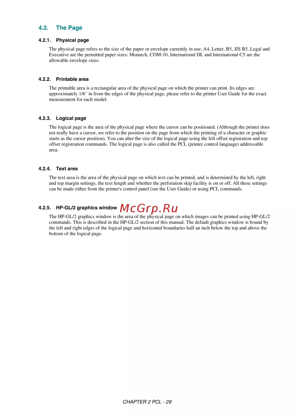 offset registration commands. The logical page is also called the PCL (printer control language) addressable