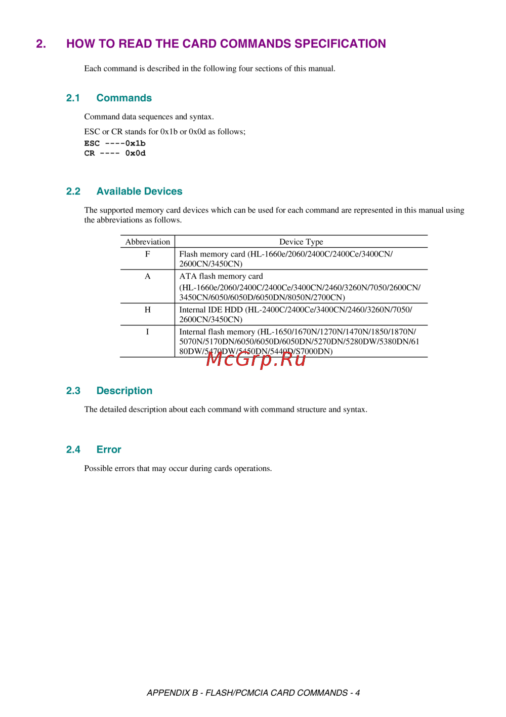 2. HOW TO READ THE CARD COMMANDS SPECIFICATION