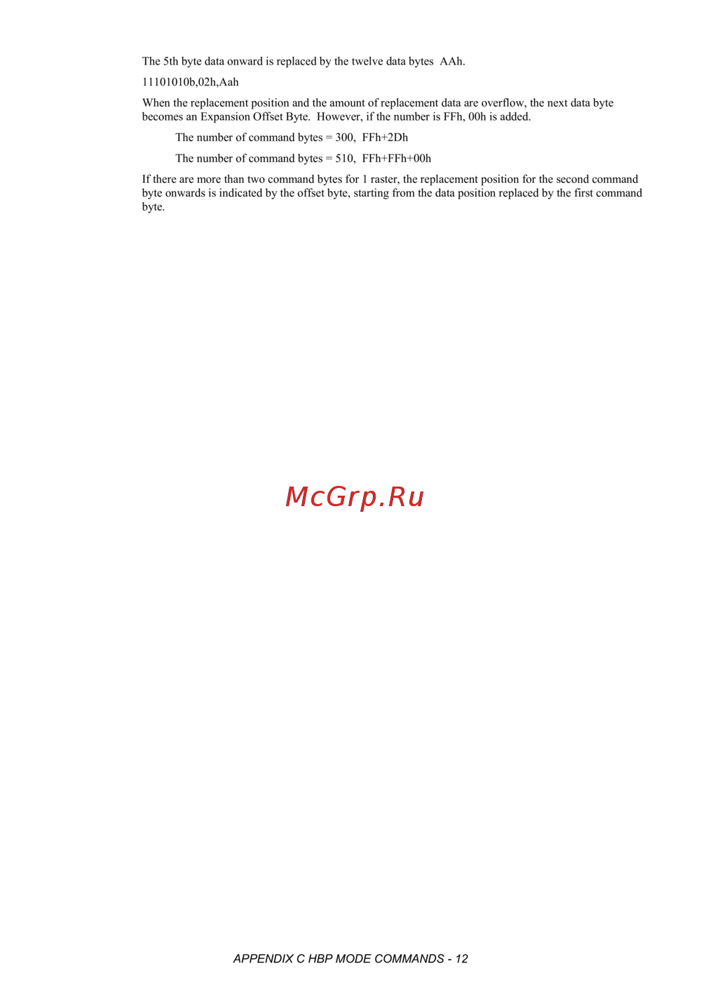If there are more than two command bytes for 1 raster, the replacement position for the second command